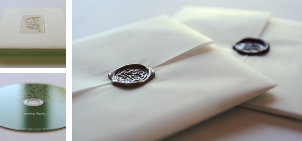 The Samhain Edition* is limited to just 31 copies, and includes a hand-bound chapbook of poetry, in addition to the silk screened disc, ivory linen-textured encasing and wax-sealed encasing.